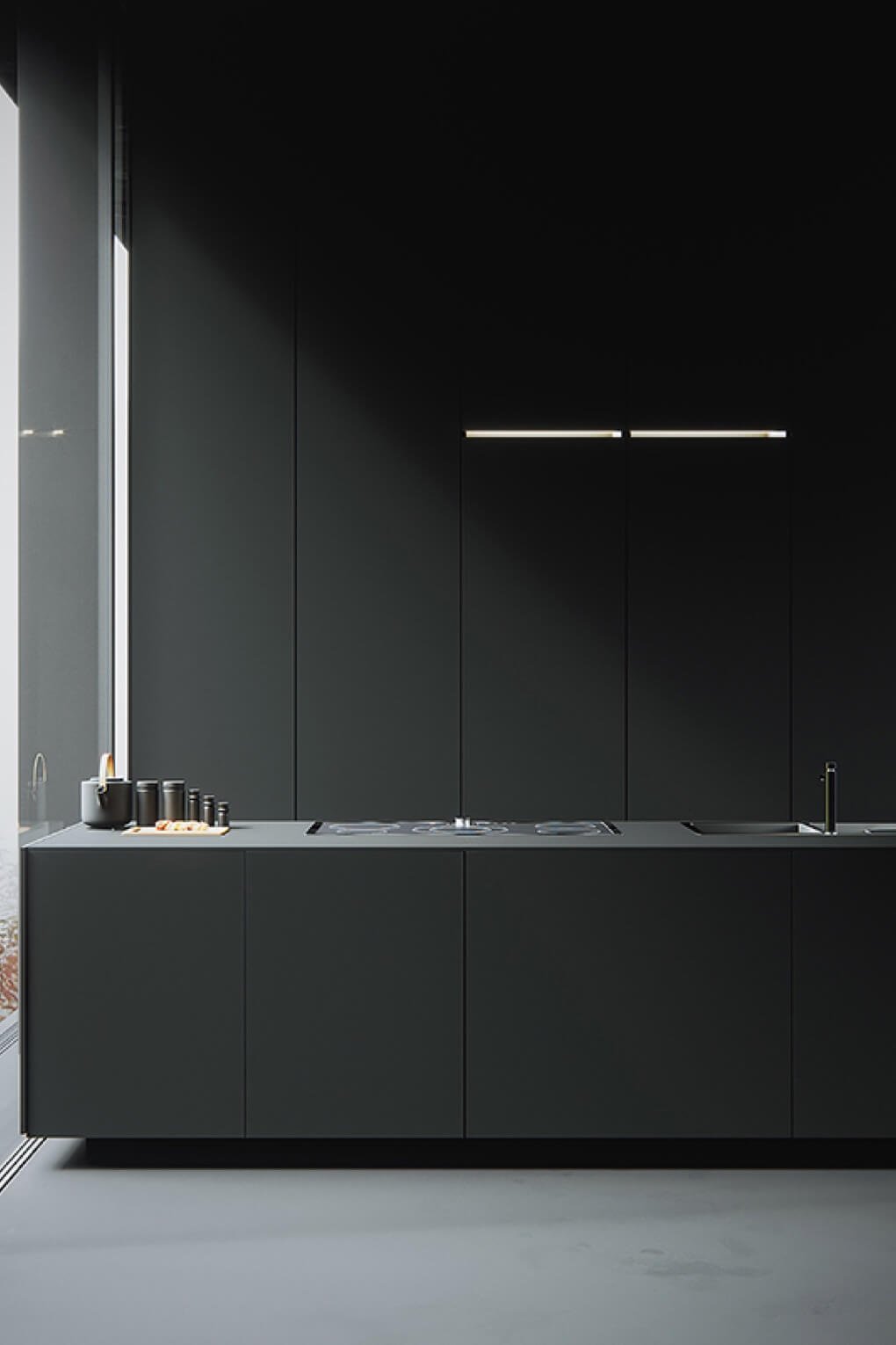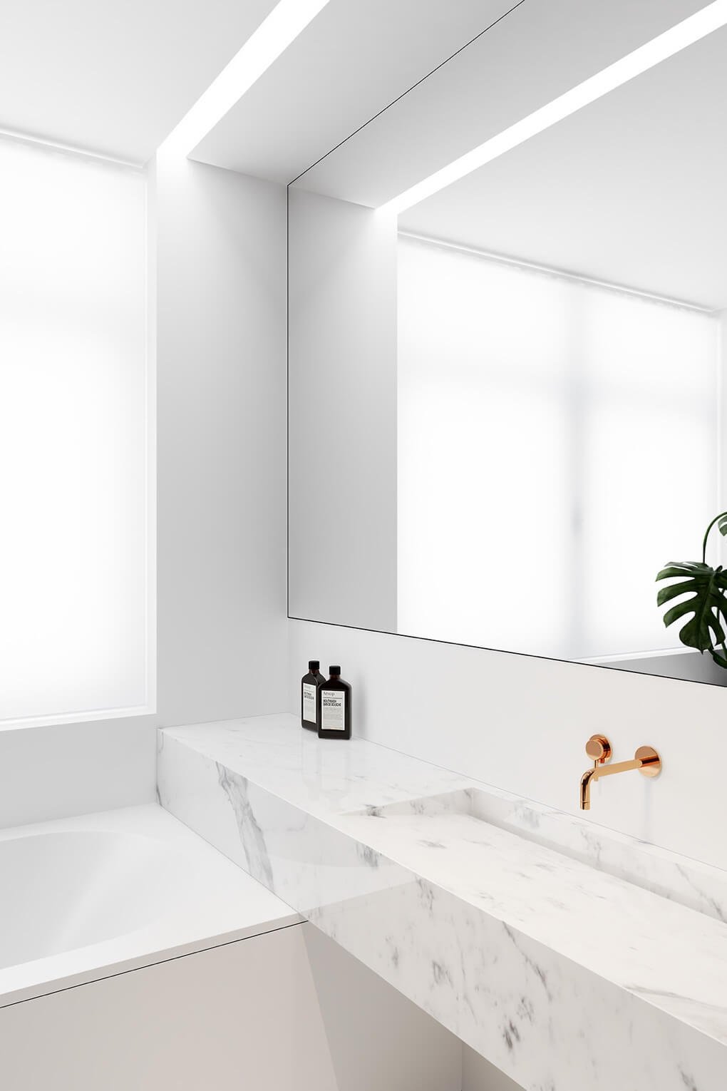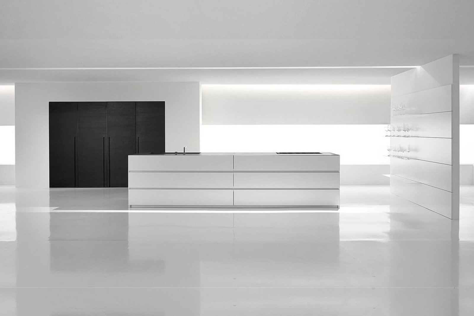We tried to utilize vertical wall space for storage units and other wall mounted fittings to achieve this purpose